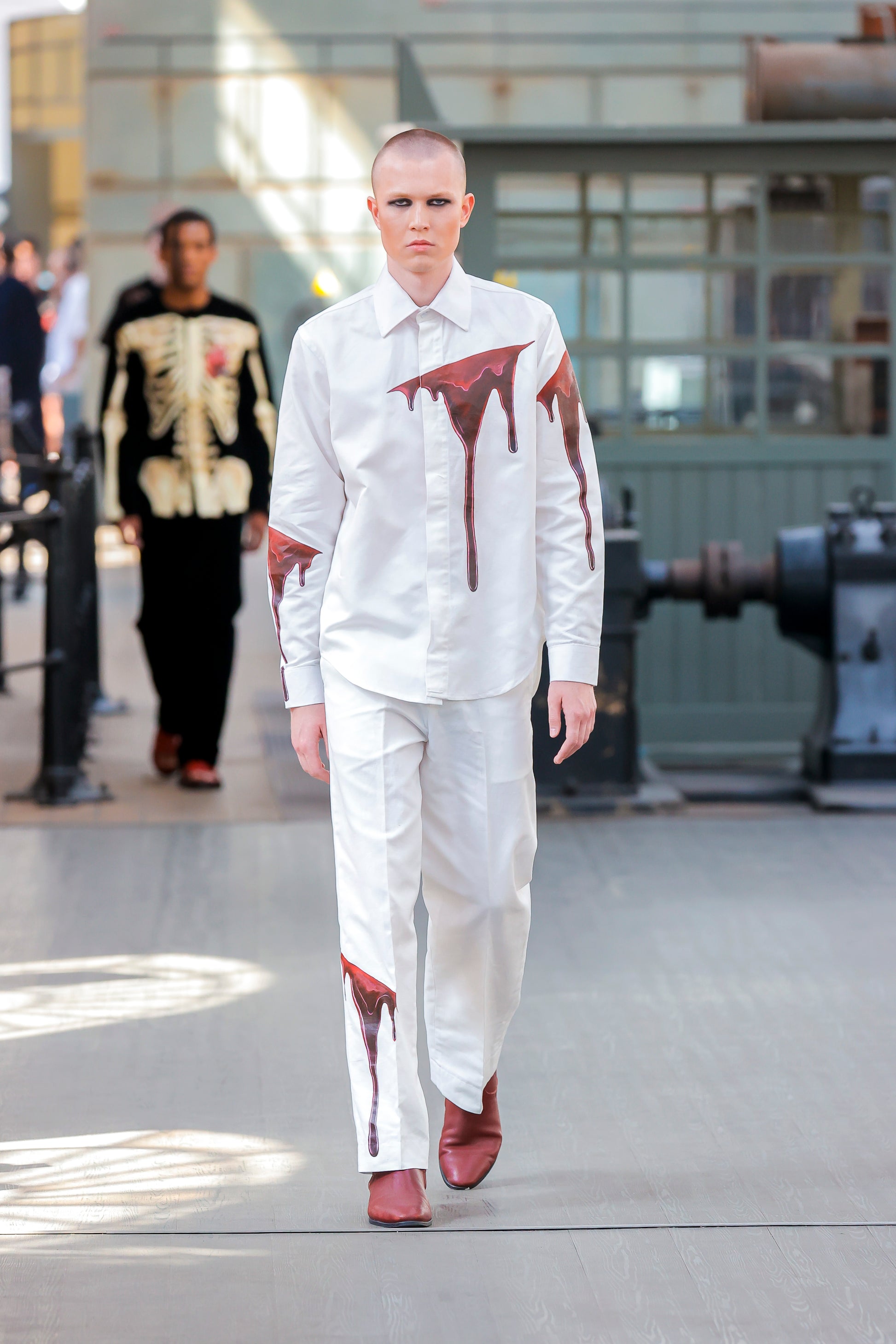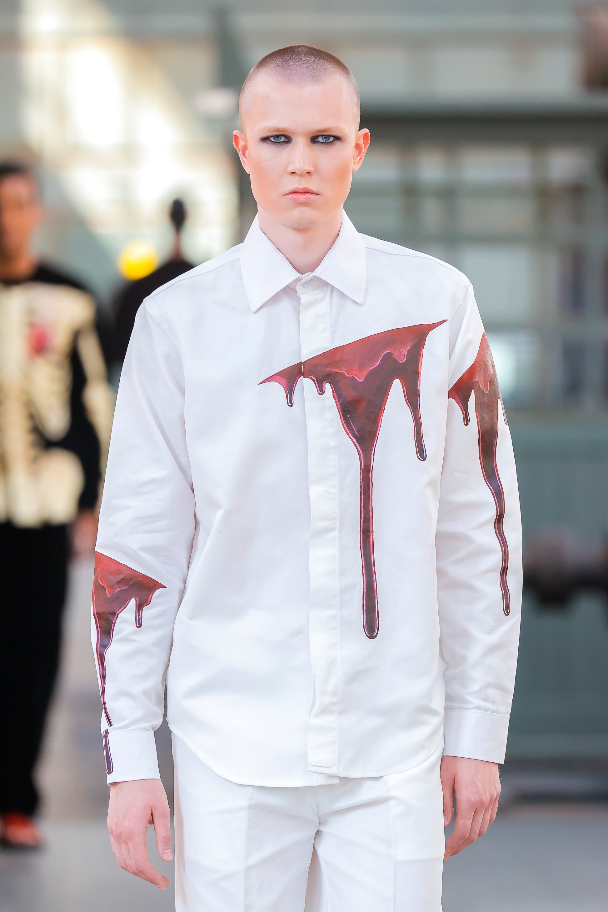 The BLED Hand-Painted Shirt Set features a unique hand painted bleeding details across strategic points, crafted from breathable cotton-linen blend fabric. Pants offer functional front pockets, back patch pockets, and adjustable side buckles for a customized fit.