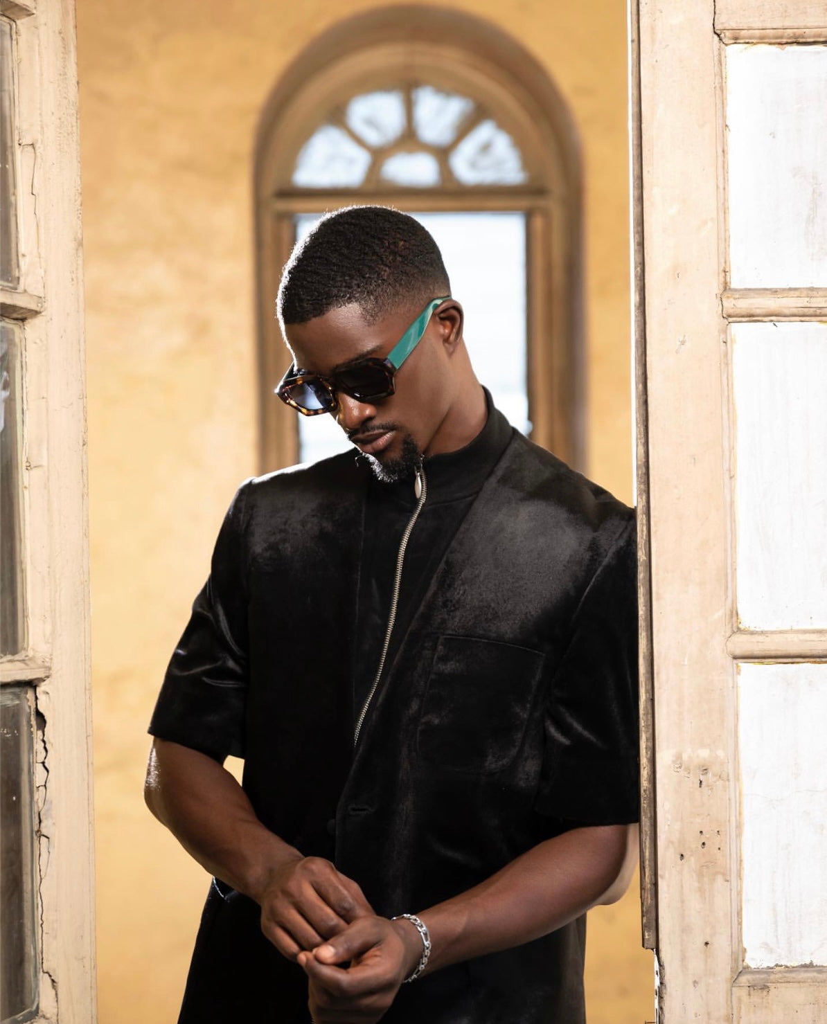 The RENLE Safari-inspired Lapelless Jacket features rich smoky velvet with a modern, lapelless design. Practical patch pockets and inner pockets keep essentials secure. Effortlessly stylish for any occasion.