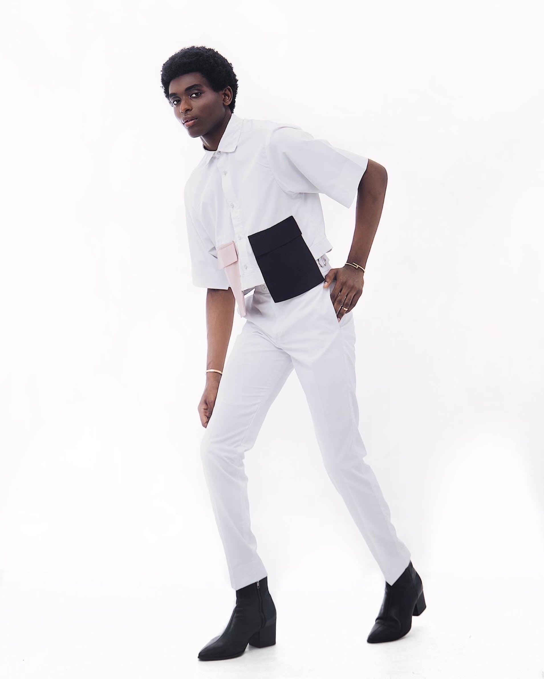 Designed from an edit to Ola Reay’s signature Night Walker co-ord, the SOSA set features a crop shirt with suspended pocket patches in pastels paired with white SOSA high waist pants.