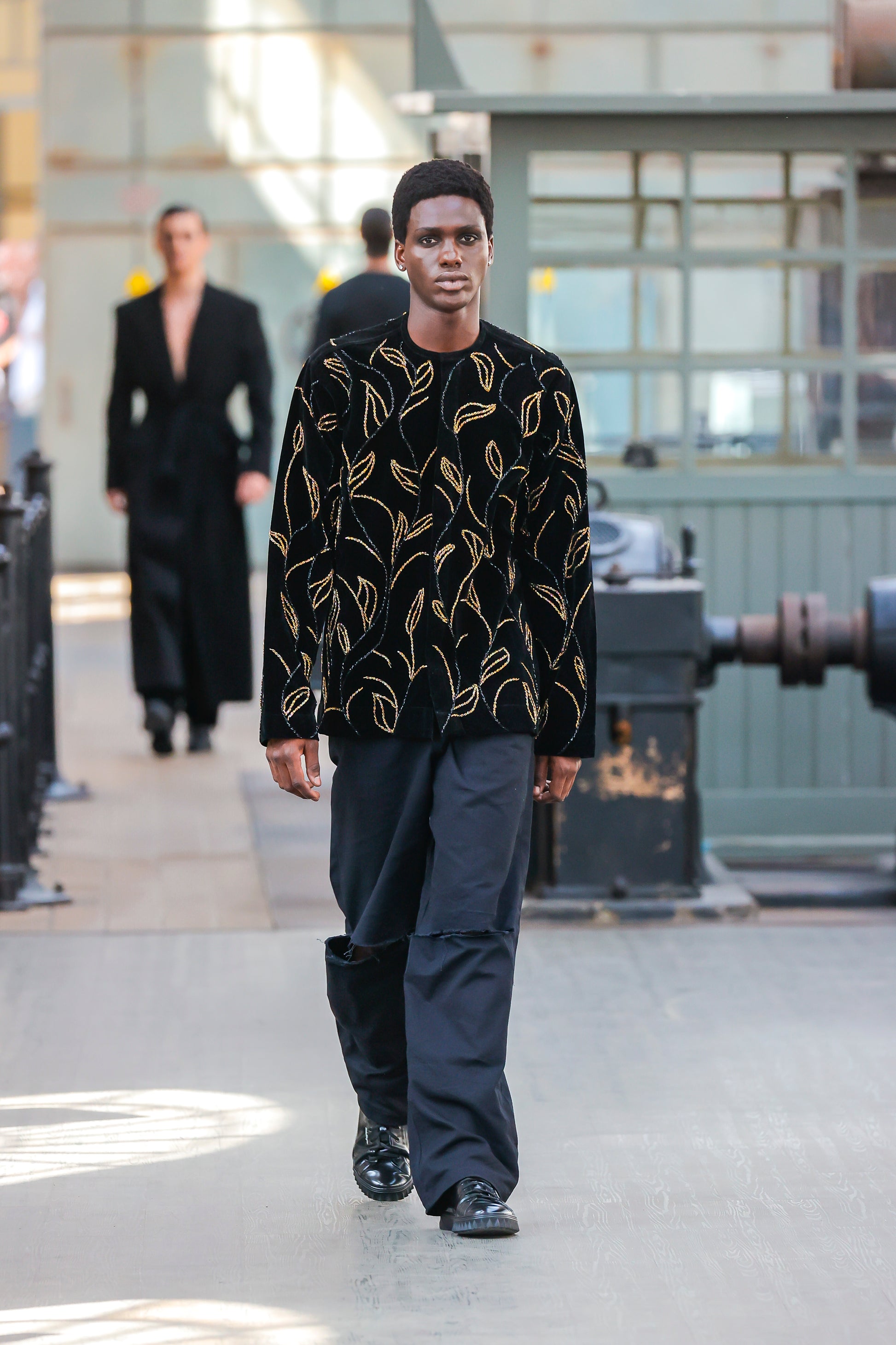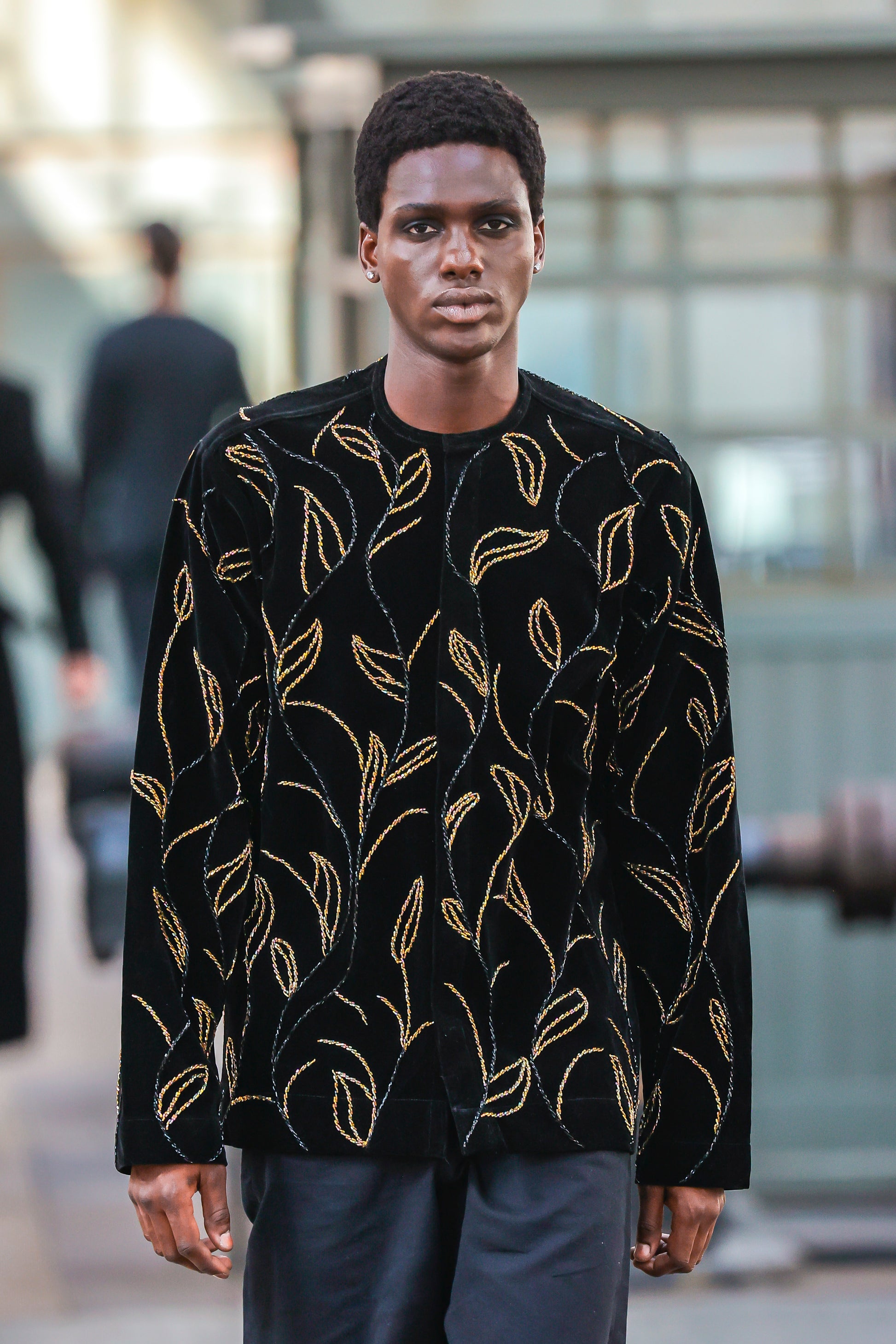 Elevate your wardrobe with the VINEYL Hand-Beaded Shacket, a sophisticated piece that seamlessly blends style and craftsmanship. Featuring intricate vine floral hand beading with glass accents, this longsleeve shacket showcases a refined roundneck design with concealed buttons for a polished silhouette. Crafted from luxurious suede with multi-gold bead embellishments, it's the perfect piece for adding texture and elegance to any outfit.
